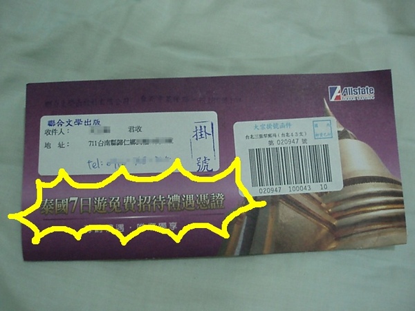 居然抽中的泰國七日遊~~~~wow~~~媽媽咪呀!