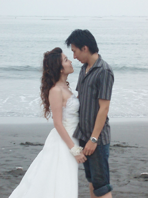 當天遊客也挺多的,因為我還不能讓婚紗先髒掉,只好一直乖乖的坐在沙灘上等~
