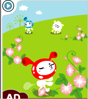 在QQ睡著時,帽子兄偷偷的在小花兒叢裡出現啦~
