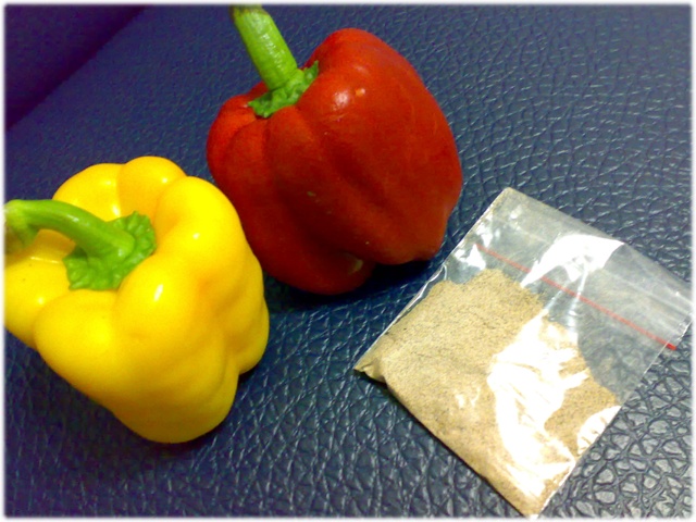 1、買粒新鮮的甜椒(廢話) 紅、黃色都沒差,吃起來感覺都一樣~